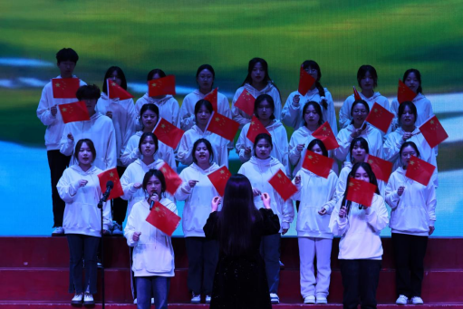 活动现场,校学生会艺术团带来了十分精彩的朗诵节目《如愿》,传达中国人血脉里割舍不了的情感羁绊,激励着当代青年发扬顽强、吃苦与拼搏勇敢的精神,为祖国美好的明天书写绚丽的篇章。艺术与传媒学院2023级本科网络与新媒体06班带来合唱歌曲《我愿》,感受青年与祖国的血脉相连,以祝愿伟大的祖国更加繁荣昌盛、国泰民安,以青春之我,愿再谱华章!整场活动在“团结协力共铸辉煌,展望未来宏伟蓝图”的标语下圆满结束。