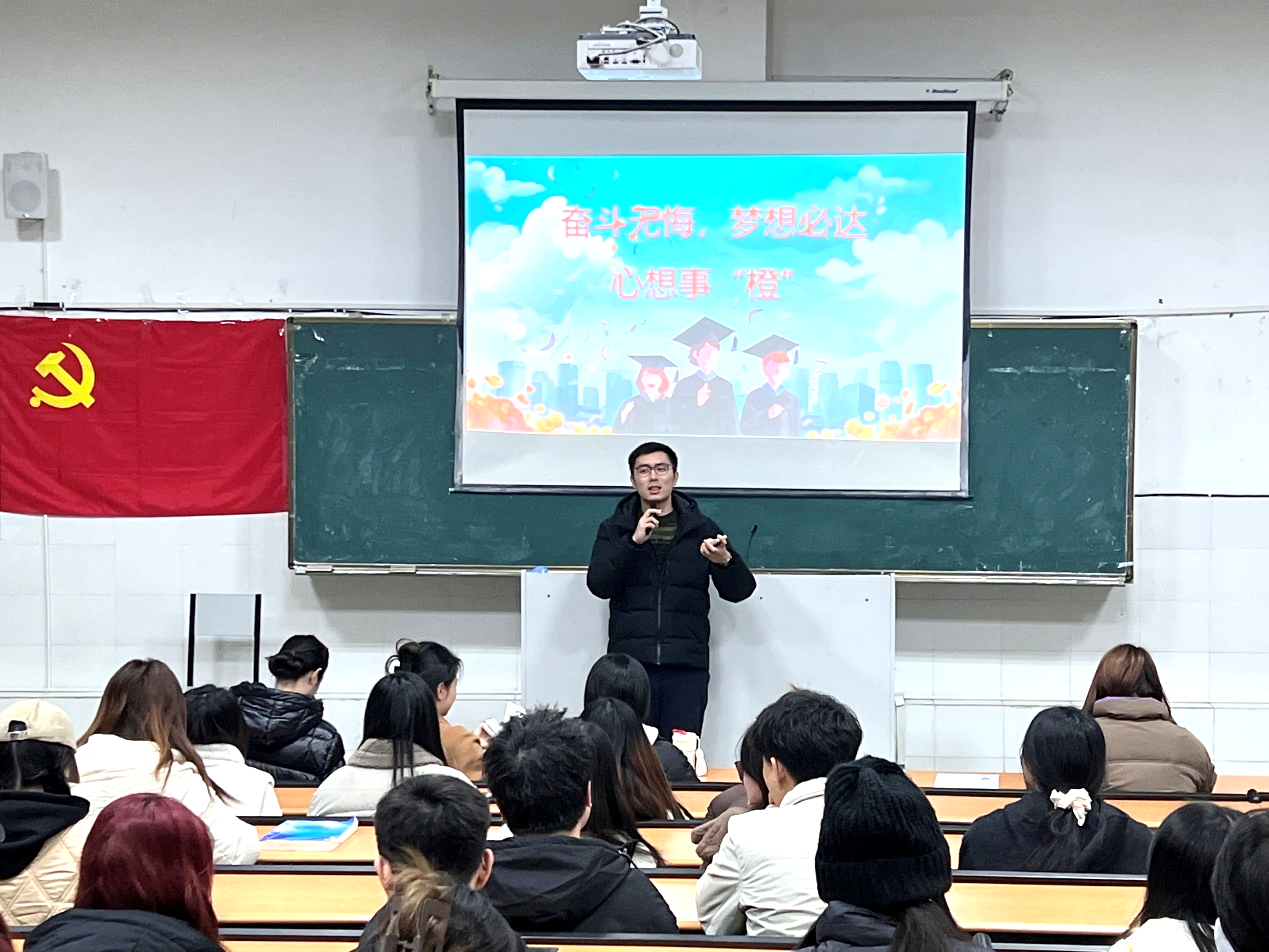 在活动前,毕业班老师为每位同学写下了祝福的卡片,并准备了新鲜的橙子寓意心想事“橙”赠送给所有即将走上考场的同学们。王晶为考研考公的同学们送上了诚挚的祝福,并表扬了每位在过去一年坚持图书馆、食堂、宿舍三点一线奔走的同学们,他们的坚持不懈为所有毕业班学生树立了良好的榜样,同时在备考期间坚持参加班级和支部活动,以更高的标准要求自己,相信在接下来的考试中都会取得满意的结果。