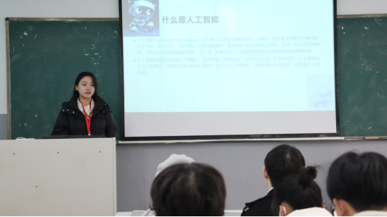 会议开始,学生科研助理团队负责人桂瑞蔚、张紫静、王睿祥、刘奇蓉、刘玛艳依次总结本学期研究中心所开展的工作和取得的成果,尤其对工作亮点进行阐述,也总结分析了工作中存在的不足及未来发展方向。王睿祥提到,在之后的工作当中会重点培养本学期的新助理,提高新助理工作能力,为学校和社会培养出更多的研究型人才。随后,学生科研助理李文志、彭清秋、温瑞熙、唐艺丹、张雨洁、畅晶宇分别围绕“在人工智能背景之下,大学生如何处理与AI的关系”主题进行分享发言。温瑞熙对人工智能进行了系统梳理,让同学们明白了什么是人工智能,并就人工智能工具的应用进行了现场展示。张雨洁、畅晶宇在“未来究竟是谁的未来”分享中表示,面对人工智能,大学生应该合理利用,不要因过度依赖AI而失去本心,要保持大学生的创作创新精神。