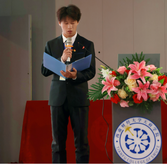 随后,卢伐公布了2023学年团学之星名单并对本学期工作做出简单总结。卢伐基于各部门特色工作及实际情况肯定了团学干部的工作成果,也指出团学工作中不足并借此向学子们提出建议:“我们要通过实践来检验知识的正确性,从学校到社会、从集体到个人,全面要求自我,做追求卓越的天府青年。”卢伐话中传达出对团学干部的期待,希望各部门成员能在未来工作中发挥出学生干部的积极性,当好校园文化建设的排头兵。