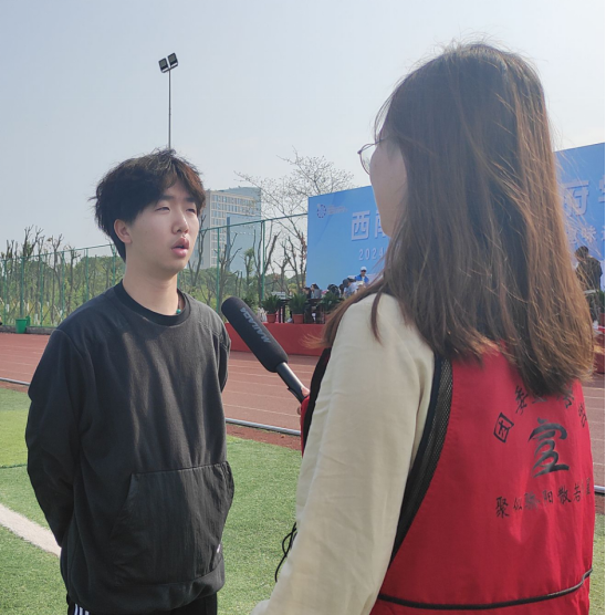 来自现代服务学院的刘震同学说道:“我觉得今天的运动会非常精彩,现场气氛特别热烈。同学们都全力以赴,展现出了非常高的竞技水平,观众们也特别热情,都在为自己的班级加油助威,大家都团结一心,顽强拼搏,令人热血沸腾。”