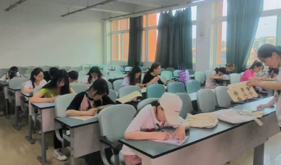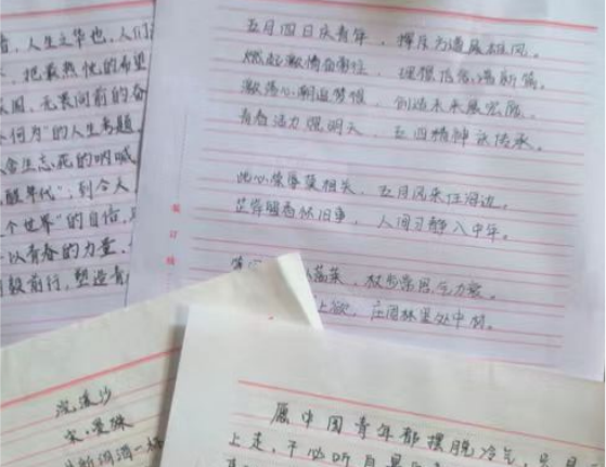 在第二个环节中,同学们现场创作名人名言的书法作品。他们挥毫泼墨,或硬笔挺拔,或毛笔挥洒,或瘦金体俊逸,一幅幅精美的书法作品展现出他们对五四精神的热爱与敬仰。