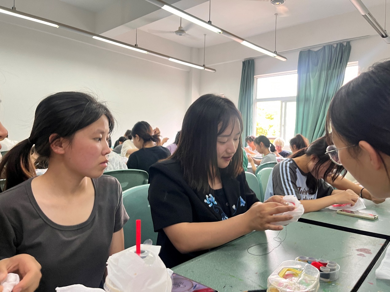 课堂上,学生们可以通过学习羌绣的历史、技艺和文化内涵,深入了解羌族的传统文化。学生们还可以通过实践掌握羌绣的基本针法和技巧,提高自己的动手能力和创新能力。杨红莉鼓励学生对传统图案进行创新,最终由学生自主选择不同类型、题材的图案开始绣制。