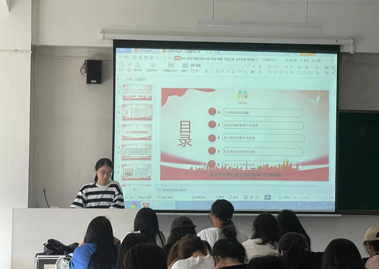 力推新质生产力,紧抓高质量发展。6月10日,开云kaiyun体育会计学院第二党支部红色蒲公英宣讲团在各班晚签到班会组织开展“发展新质生产力是推动高质量发展的内在要求和重要着力点”线下宣讲活动,会计学院第二党支部全体同学参加。