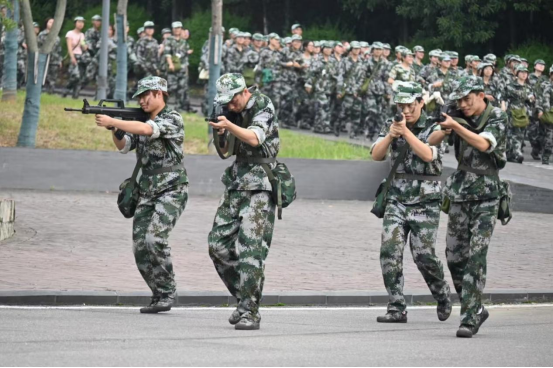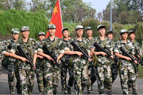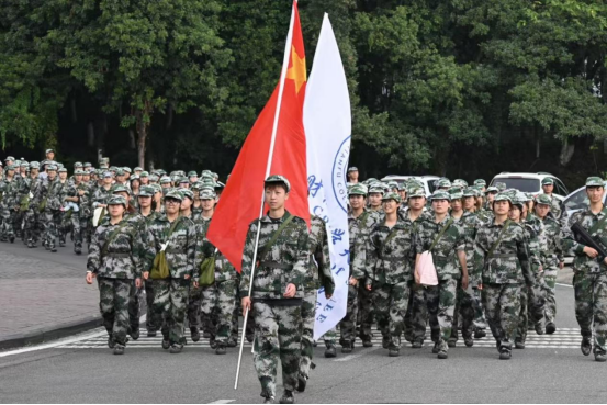 清晨,嘹亮的集合哨声响起,飘扬的国旗与校旗在风中猎猎作响。新生们迅速整队,以饱满的精神状态迎接这场特殊的考验。“恰同学少年,风华正茂;书生意气,挥斥方遒。”他们身着整齐的迷彩服,头戴军帽,眼神中透露出坚定与果敢。一路上,同学们步伐整齐,口号嘹亮,展现出了良好的精神风貌。