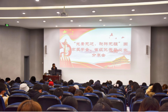 活动伊始,马岚进行了简短发言,希望分享会的召开能激励更多学生共同进步,能从优秀学生的经验分享中得到启发,进而完善自我。随后由省级优秀毕业生和国家奖学金获得者分别进行分享,他们从思想、学习、社会实践、艺术展演以及学习建议等方面,用真切生动的语言讲述了他们的亲身经历,分享了学习经验与心得,为学弟学妹的成长进步起到了良好的启迪解惑作用。分享会最后设置了答疑环节,有针对性地帮助解答大家现阶段所遇到的学习问题,提出参考建议。国家奖学金获得者李苓雪表示,此次活动有效帮助了大家明晰个人目标,精进个人规划,坚定前进方向,能将自己的经验分享给大二大三的学弟学妹们,感到无比荣幸,希望他们有所收获,成为更优秀的自己。