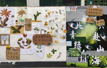 活动期间,同学们以废弃纸箱、旧布料、落叶、落花等为原材料,并结合专业所学与艺术灵感,设计制作出兼具实用性与观赏性的环保作品,让原本失去生机的它们重新鲜活起来。废弃的纸箱被同学们改造成了宣传标语;落叶与落花则被拼接成了各种图案;还有同学将落叶和落花进行拓印,将它们的美丽形态永久地定格在旧布料上,让短暂的生命以另一种方式留在这个世界上,赋予废旧物品新的生命和意义。
