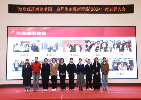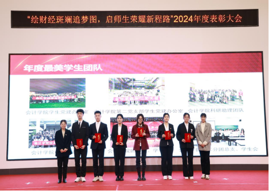 随后年度十大优秀教师、年度十大优秀学生、年度最美学生团队及年度最美寝室等各项荣誉逐一揭晓,荣耀之光闪耀全场。其间,艺术团带来的朗诵《数海逐光,青春担当》与古风舞《万疆》,以精彩绝伦的表演将现场气氛推向高潮,展现了会计学院师生的多才多艺与青春风采。
