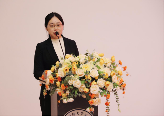 优秀教师代表李晓洁随后登台发言。她表示,将以新财经理念为指引,勇做创新教育的开拓者,积极融合前沿领域知识,与师生携手共进;以终身学习为追求,成为可持续发展理念的践行者与传播者;始终秉持“身教重于言传”的信念,以身作则,密切关注学生成长,与时俱进。优秀辅导员代表程茂华在分享中强调,工作中要时刻保持高度的责任心,引导学生树立正确的价值观。她深情地说,每一位学生都是独一无二的种子,应积极鼓励他们挖掘自身潜力,在挑战中磨炼意志,用青春的汗水铸就未来的辉煌。