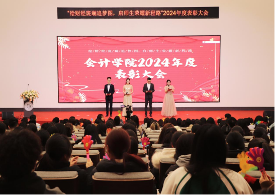 最终,大会在悠扬的《美丽的蒲公英》歌声中圆满落下帷幕。此次表彰大会,不仅是对优秀师生和集体的高度赞誉,更是一次凝聚力量、振奋人心的盛会。会计学院将以建设国内一流应用型新财经人才培养学院为目标,砥砺前行。期待全体师生以榜样为引领,在财经领域中勇立潮头,共同奔赴充满希望的新征程,创造更加辉煌的明天!