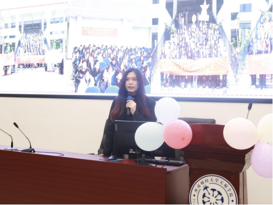 在主持人热情洋溢的开场中,本次活动正式拉开帷幕。紧接着,马岚老师进行致辞:“优秀学子是青年群体中的鲜明旗帜,他们的成长轨迹不仅是个人奋斗的缩影,更是学校育人成果的生动体现。希望同学们以榜样为镜,汲取奋进的力量,在未来的征途上,既能仰望星空,心怀远大理想,又能脚踏实地,用实际行动续写新一代的华章。”