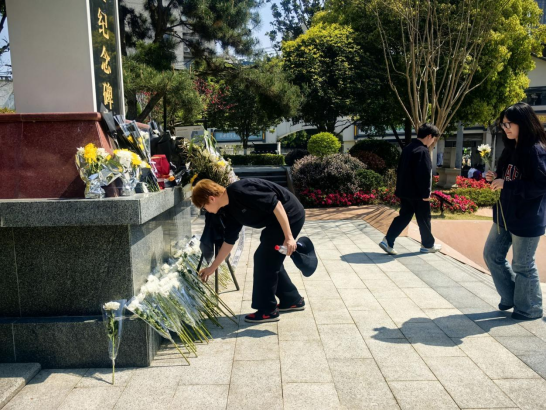 同学们向革命先烈献花