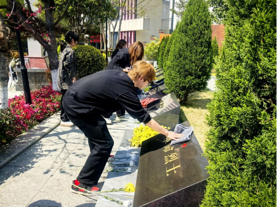 活动中,同学们列队整齐,怀着崇敬之心,向革命烈士们敬献鲜花。洁白的菊花静静绽放,寄托着无尽的哀思,也承载着对先烈们的崇高敬意。随后,同学们拿起洁净的毛巾,认真细致地擦拭着每一块墓碑。他们动作轻柔且专注,每一次的擦拭都饱含深情与敬重,一心想让墓碑重归洁净。擦拭完毕,同学们把精心制作的缅怀卡,轻轻悬挂在墓碑旁的树枝上。卡片上,写满了对先烈的追思与敬仰,在风中微微晃动,仿佛在诉说着无尽的思念。