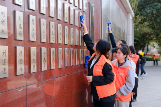擦拭英烈纪念墙