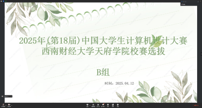 4月12日下午,智能科技学院在腾讯会议上开展了2025年华迪杯·中国大学生计算机设计大赛四川省级赛校内选拔赛。此次比赛邀请到了学院的6名专业老师担任大赛评委。