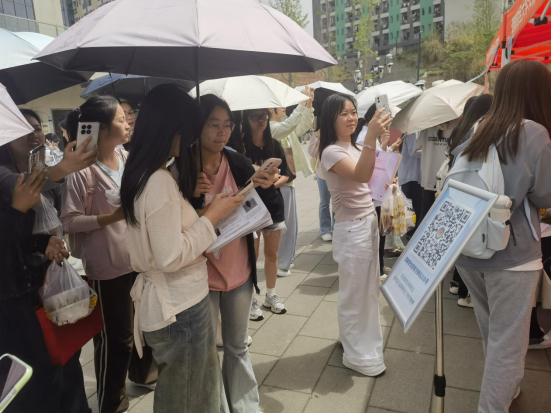 活动现场,主办方精心设置了“国家安全知识大挑战”和“国防装备辨认赛”两大互动环节。同学们在答题区排起长队,依次答题;展板上展示的国防装备模型和历史场景图彰显我国国防实力,吸引了在场师生的热情参与。参与者们手持答题卡,认真思索、踊跃作答,充分展现出对国家安全知识的浓厚兴趣。