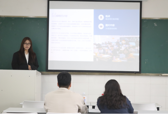 答辩会上,各队伍从活动策划、实施过程、创新亮点及社会反响等方面展现了形式多样、内涵丰富的实践成果。各支队伍活动方案各具特色,从专业介绍到校园生活分享,从线上线下结合宣传到校友面对面交流,充分展现了同学们的“用心”与“创新”。评委老师们则从可行性、创新性、预期影响等维度精准提问,并就活动细节优化、资源整合策略等方面提出了建设性意见。