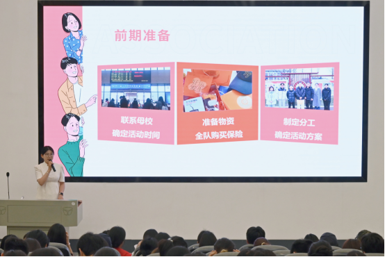 答辩现场,各队伍依次登台,通过PPT和视频的方式从活动策划、活动分工、活动现场、活动亮点、活动成果等进行展示,全方位、多角度地分享了活动的经验与感悟。有的团队通过线上问卷的方式提前收集学弟学妹们关心的问题,如专业选择、学习方法、校园生活等问题,并在母校现场宣讲时展开了更充分的答疑。
