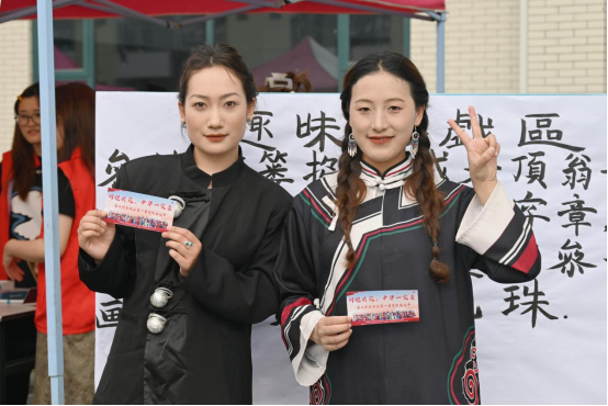 活动开始,同学们带着特制的明信片,向着民族锅庄舞体验区、民族文化知识学习区、民族趣味游戏互动区出发,体验丰富的民族文化活动。