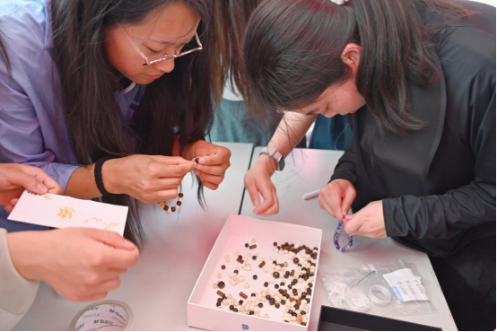 民族趣味游戏互动区设置了顶碗竞走、背篓投球、画彩蛋、串巴珠等民族特色游戏,同学们不仅亲身体验了民族特色游戏的乐趣,也在欢声笑语中拉近了距离、增进了情谊。