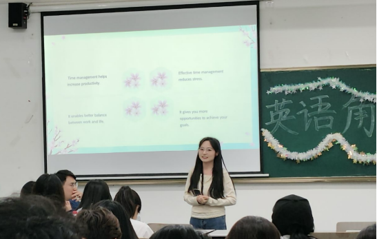 4月29日晚,德阳校区举办了本学期第四次英语角活动,主题为“Are you a good time manager?”。此次活动吸引了100余名同学的积极参与,邀请到了文化与教育学院教师赖晗、李萍、罗谢雨和黄雅琳担任嘉宾,旨在引导同学们探讨时间管理的方法及重要性。