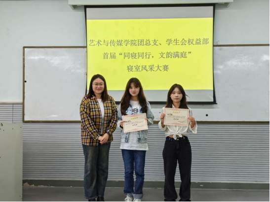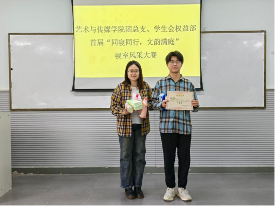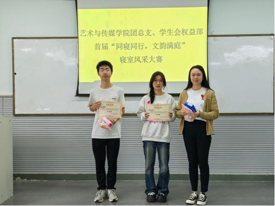 此本次寝室风采大赛的答辩环节既是一场精彩的展示评比,更是一次充满智慧火花的创意交流。在答辩过程中,同学们不仅提升了语言表达能力,更在团队协作中深化了对寝室文化的认同与归属。这场别开生面的大赛为学院寝室文化建设注入了新的活力,营造出积极向上、创意无限的校园文化氛围。展望未来,艺术与传媒学院将以此次大赛为新起点,持续探索更富创意的活动形式,搭建多元化的文化交流平台,引导同学们深入挖掘寝室文化内涵。让和谐共处、奋发向上、开拓创新的寝室文化精神在校园中生根发芽,为每一位学子的全面发展提供丰沃土壤,让寝室真正成为滋养同学们青春梦想的温暖家园。