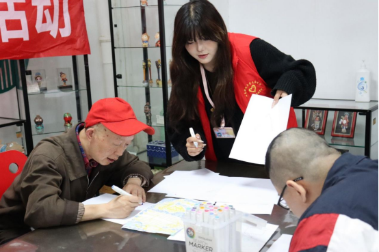 为增强大学生的社会责任感,培养关爱弱势群体的公民意识,营造理解、尊重、关心和帮助残障朋友的良好社会氛围,近日,艺术与传媒学院团总支、学生会组织志愿者代表前往成都市成华区残疾人联合会,开展了以“新叶绘画,助残筑梦”为主题的公益服务活动。此次活动以绘画、手工等艺术形式为载体,搭建残障朋友与志愿者互动交流的桥梁。双方携手创作,用色彩传递温暖,以艺术凝聚希望。这不仅是一次公益实践,更是一场心灵的对话,让大学生们在服务中深刻体会社会责任,也让残障朋友们在艺术表达中增强自信、感受关怀。