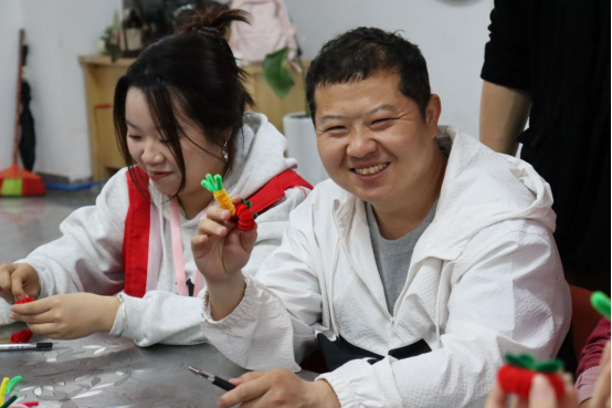 在手工创作区,志愿者们准备了可塑性极强的扭扭棒和色彩缤纷的超轻黏土。在志愿者的耐心引导下,残障朋友们用灵巧的双手将普通材料幻化成一件件独特的艺术品。他们或捏塑造型,或编织创意,每一件作品都闪耀着个性的光芒。这些手工艺品不仅是技巧的展现,更是心灵世界的生动表达。无论身体条件如何限制,艺术始终以其包容的姿态,为残障朋友搭建起表达自我、沟通情感的无障碍桥梁。活动现场,创意的火花在指尖跃动,温暖的情谊在作品中流淌。