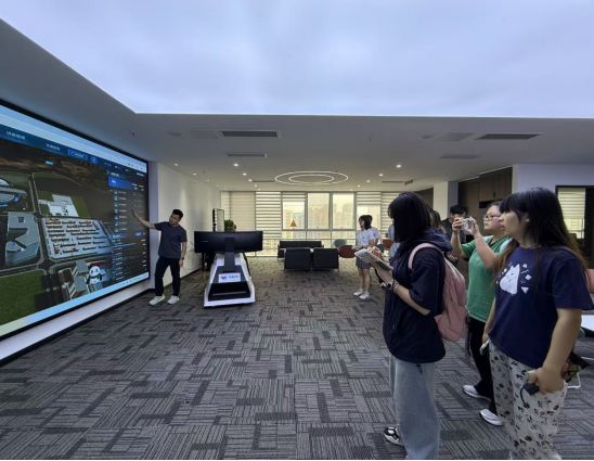 在企业参访环节,声通科技的项目经理赵贞通和研发经理肖东向师生详细介绍了公司的核心技术,包括智能语音交互、自然语言处理及无人驾驶研发成果。肖东重点讲解了无人驾驶公交车的“感知-决策-执行”闭环系统及多传感器融合技术,深入分析了无人驾驶技术在实际应用中的优势与挑战。赵贞通则结合具体案例,展示了数智技术如何优化管理流程、提升服务效率,帮助学生理解技术在实际管理中的落地应用。在技术实训环节,学生亲身体验了无人驾驶公交车的运行过程。通过模拟系统,学生观察了车辆的自主导航与避障过程,并深入了解了突发路况下的应急决策机制。