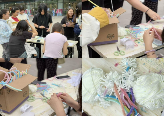 在“巧制蒲姿焕彩,精研校徽荣光”的蒲公英制作活动中,同学们提前认真钻研制作教程。活动现场,绿色扭扭棒与白色毛线在他们手中灵巧翻飞,创意如泉涌般迸发。一根根扭扭棒精心缠绕成茎,一簇簇毛线细致组合成冠,不一会儿,一个个造型别致、独一无二的蒲公英便跃然眼前。这些精美的蒲公英,早已超越了单纯手工艺品的范畴,它们恰似灵动的使者,象征着天府学子自由洒脱、坚韧不拔的精神风貌,与“璀璨天府”所展现的积极向上形象完美契合、相得益彰。活动过程中,同学们全神贯注、沉浸其中,当完成作品的那一刻,自豪之情溢于言表。这场活动不仅提升了大家的动手实践能力,更让同学们对校园精神有了更为深刻、独到的感悟,为“璀璨天府”注入了鲜活灵动的精神力量。