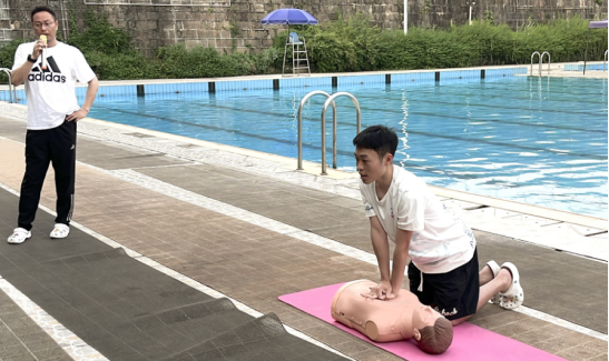 游泳专项班的同学们也积极参与到活动中来,他们不仅向大家详细讲解了防溺水的理论知识,还分享了一些简单实用的应对方法。其中一位同学特别强调:“溺水黄金救援时间仅有4- 6分钟,在这宝贵的几分钟内,掌握心肺复苏术(CPR)和溺水后如何运用海姆立克急救法,就有可能挽救一条鲜活的生命。”为了让大家更直观地了解急救操作,游泳专项班的同学们还现场演示了急救操作要点,并着重提醒大家切勿盲目下水施救,同时展示了岸上救援和水下救援的正确方法。