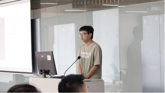 软件类学生代表王靖然分享了移动端设计的基本框架,并针对相关功能实现的核心代码做出了解释,分享了相关代码实现过程中出现的问题和进一步优化的方案,并现场向大家展示了微信小程序的实际使用效果。