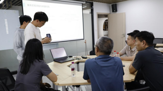 硬件方向学生代表袁梦宇和吴比同学首先分享了整个智慧幼儿园项目的设计框架和具体需要实现的功能,并进一步演示了硬件的相关功能电路设计、驱动代码实现并现场演示了多平台下基于蓝牙广播机制的心率数据推送。