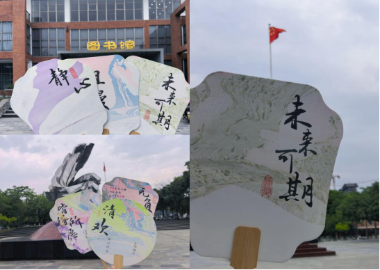 在漆扇区的活动现场,一把把漆扇、漆器展现出流光溢彩的独特魅力。在工作人员的指导下,参与的同学们小心翼翼地尝试漆扇的制作步骤,亲手触摸、感受这非遗的温度。