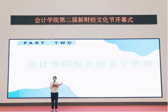 5月27日晚,新财经文化节在热闹的氛围中拉开帷幕。陈真子在开幕式致辞中指出,自 2015 年学院开启新财经人才培养转型以来,大数据、人工智能等技术正不断重塑财经行业格局。在此背景下,学院的教学与学习必须紧密契合经济社会发展和国家战略需求,赋予传统财经 “会计+”和 “新技术+”的全新内涵。她强调,学院自2024年开启了每年一度的新财经文化节,是想通过丰富多彩的活动,让师生参与其中,体验财经的“新”,认同财经的“新”,传承会计学院新财经的精神。这种“新”,既是专业和行业的新业态,也是学习和教学的创新精神。新财经文化节就像会计学院的火炬,一届一届接力传下去。