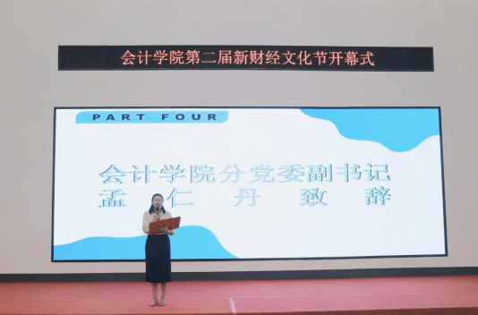 为深化学生对数智技术重塑财经行业的认知,拓宽职业视野,强化数据分析能力与创新思维,推动“专业+技术”复合型人才培养,5月27日至29日,会计学院举办了以“数智财经,财赋未来”为主题的第二届新财经文化节活动。本次活动通过 “辩论+实践+分享”的三维立体模式,吸引全校师生解锁数智财经新生态。会计学院院长陈真子、会计学院分党委副书记孟仁丹、党委学生工作部副部长严飞雷、后勤保卫部副部长余俊伟、会计学院分党委副书记夏丹、会计学院副院长许静、会计学院副院长张娟、会计学院副院长陈茜出席新财经文化节开幕式活动。