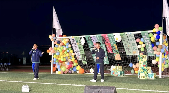 最后,全体人员合唱《我的未来式》,晚会落下帷幕。激昂的旋律、整齐的歌声,唱出了体育学院学子们对未来的憧憬与期待。舞台上,院旗飘扬,全体成员目光坚定,歌声响彻田径场上空,饱含着师生们对学院的热爱与祝福。