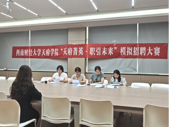 为切实提升大学生就业竞争力,强化职业规划意识,6月3日,由艺术与传媒学院承办,学院学生第一党支部协办的“天府菁英·职引未来”模拟招聘大赛复赛在成都校区(东区)L5-349教室成功举办。大赛特邀艺术与传媒学院分党委副书记林琳、康养护理学院教师管京萍、冯霜与体育学院教师徐晓霞担任评委。通过高度还原真实职场场景,并设置首轮无领导小组讨论与第二轮压力面试的双重考验,为参赛学子打造了一个检验真知、超越自我的实战舞台,不仅显著提升了同学们求职竞争力,更深化了其对职场规则与自身潜能的认知,有力彰显了学院以赛促学、赋能未来职业发展的育人成效。
