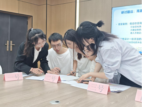 比赛伊始,无领导小组讨论环节便呈现出紧张而热烈的氛围。来自不同专业的选手们围绕“高速发展时代下的职业通关攻略——三年成长计划设计”这一命题展开深度交锋。面对“行业技能迭代加速、职业兴趣易转移、收入波动加剧”等预设的现实挑战,小组成员迅速明确分工:有人主动引领方向把控节奏,有人依托数据剖析提出创见,有人巧妙斡旋分歧凝聚共识。在有限时间内,他们充分发挥跨专业协作优势,融合多元视角,共同设计出兼具行业适应性、兴趣契合度与专业优势的动态职业规划方案。当倒计时进入最后五分钟,各组高效提炼核心观点,完成了条理清晰的总结陈述,充分展现了新时代青年在复杂职场环境中的快速应变能力、协同创新精神与结构化思维水平。