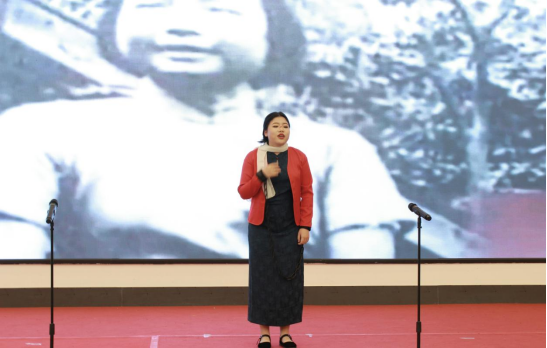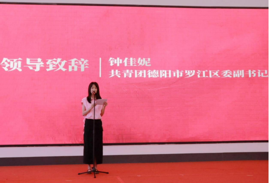 共青团罗江区委副书记钟佳妮致辞。她讲道:“中国共产党人精神谱系是中国共产党百年征程的精神丰碑,青年一代要以本次展演活动为契机,在沉浸式体验中传承红色基因,赓续红色血脉。” 她鼓励青年学生将精神力量转化为行动自觉,在民族复兴征程中书写青春答卷。