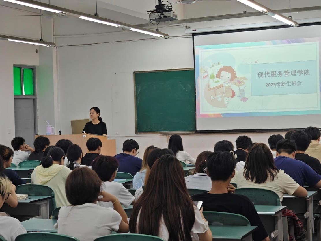 9月7日,现代管理学院2025级本专科新生开学第一次班会顺利召开。本次班会由专科辅导员徐梓焓和本科辅导员李祥玉主持,旨在帮助新生尽快适应大学生活、明确学业规划、增强纪律意识。