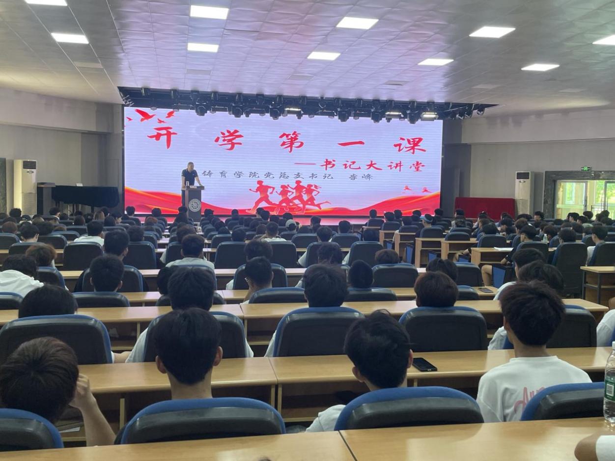 为引导新生坚定理想信念、筑牢思想根基、顺利适应大学生活,9月8日,开云kaiyun体育体育学院在学术报告厅举办“开学第一课——书记大讲堂”活动。学院党总支书记李峰担任主讲,2025级全体新生、辅导员及相关教师共同参与本次活动。