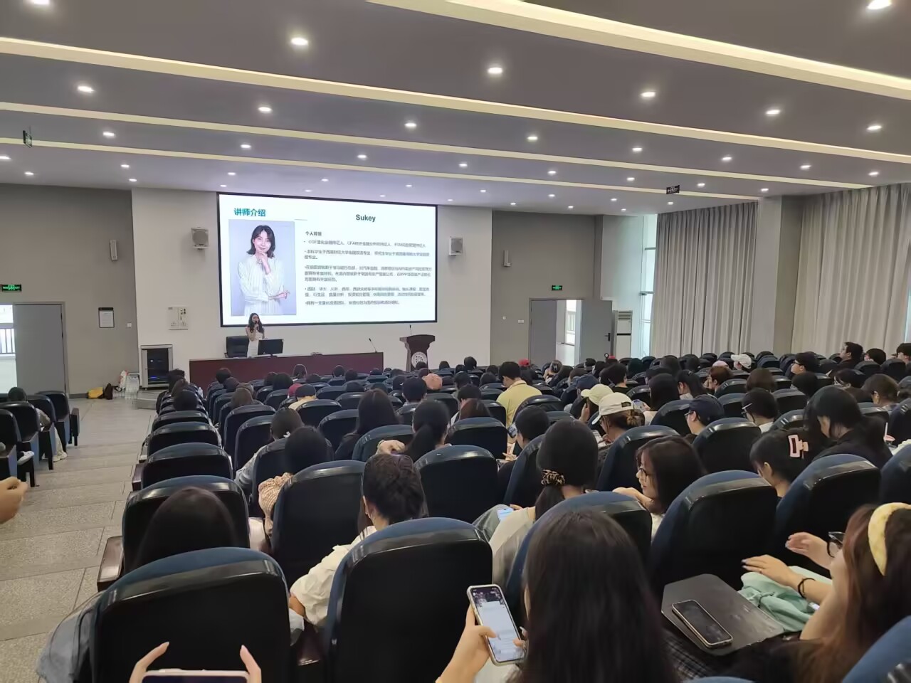 讲座开篇,胡苏以宏观视角切入,简要介绍国际经济与贸易的发展逻辑、数字经济对金融行业的赋能作用,以及资产评估在金融活动中的核心价值,帮助学生快速建立对金融相关领域的整体认知。随后,胡苏结合自身职业经历展开自我介绍,让同学们更直观地了解行业一线动态;同时,她围绕量化投资的策略应用、风险控制等内容进行讲解,用实际案例将抽象的专业知识具象化,引发广泛共鸣。