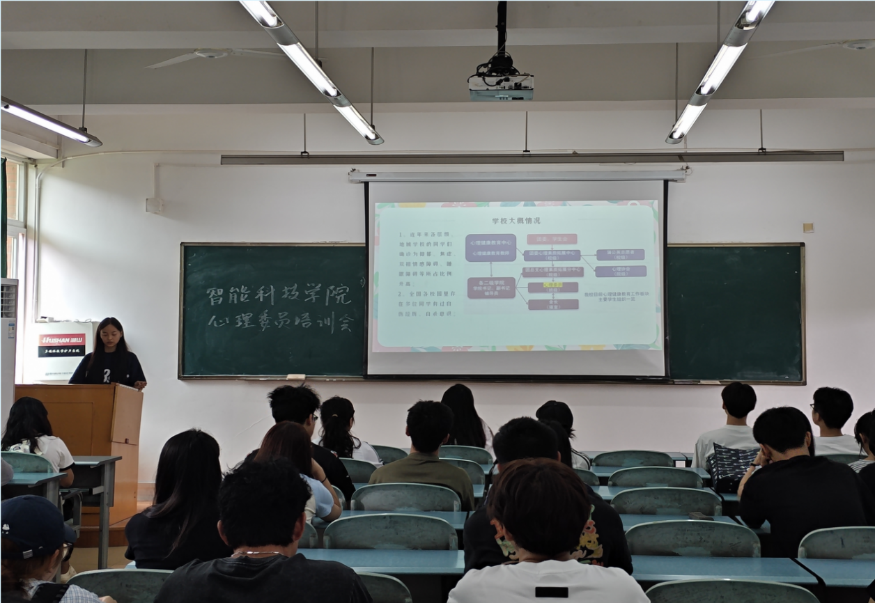 为提升学院心理委员的工作能力,构建更为稳固的学院心理健康防护网,切实保障学院学生的心理健康,智能科技学院团总支心理素质拓展分中心于9月25日在1405教室开展了2025秋季学期心理委员培训会。本次培训会由团总支心理素质拓展分中心成员闫春兰主讲,学院全体大一、大二及新入学专升本班级心理委员参与。