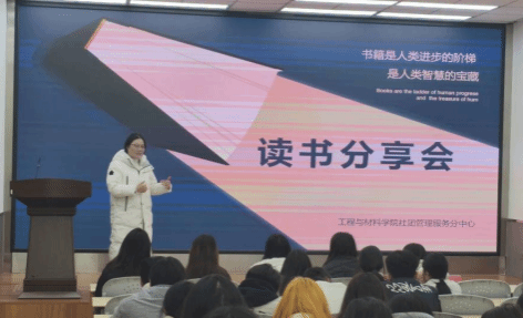 为深入贯彻“爱读书、读好书、善读书”的理念,营造阅读氛围,让广大青年养成阅读习惯,激发阅读热情,同时提高青年学子的读书素养,提升自身的文学水平,工程与材料学院于12月13日在实验楼110开展了“以书润心,与智同行”读书分享会。学院办公室主任张娇娇、团总支书记彭淑玉、辅导员崔晓凤、学生副书记张慧祺、秘书长彭晴、学生会主席徐浩然、副主席王钲、魏欣煜担任本次读书分享会的评委。共12名同学参与读书分享,150余名同学参加。