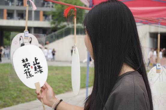 现场同学热情满满、创意无限,利用彩笔、油笔、蜡笔等工具,认真勾勒、巧妙布局,制作出一把把风格各异的团扇——有的以民俗文化为主题,有的融入山水元素,还有的体现出现代风格,展现出独特的艺术风采。