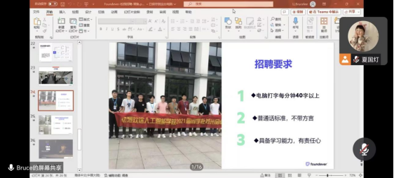 11月9日,智能科技学院以线上形式开展了赛科斯专场招聘会。招聘会由苏州品卓信息技术服务有限公司负责人主讲,赛科斯企业负责人、智能科技学院党总支书记常荣和学工综合办副主任李禹锌、2024届毕业班辅导员及2024届全体毕业生参会。