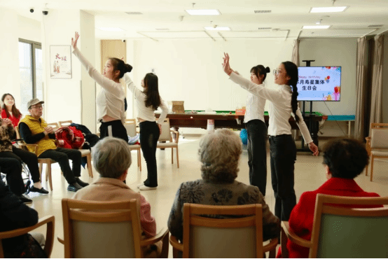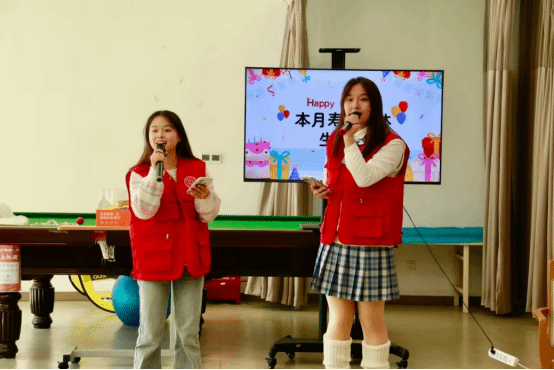 活动当天,志愿者们首先为老人们带去了歌曲演唱、舞蹈等节目,其中经典歌曲《荷塘月色》和民族舞蹈《万疆》深受老人们的喜爱。节目表演结束后,志愿者们为本月过生日的11位老人献上了生日蛋糕和鲜花以及美好的生日祝福。志愿者们和老人们齐唱生日歌,老人们在欢声笑语中吹蜡烛、切蛋糕,尽显岁月美好。随后,志愿者们与老人们深入交流,关切询问他们的身体状况和生活状况,在交流的过程中,老人们的脸上始终洋溢着幸福的笑容。