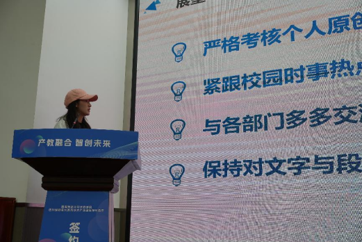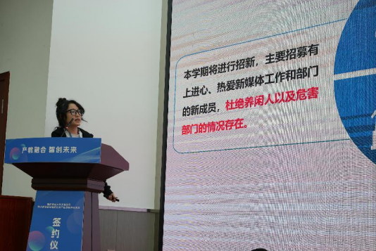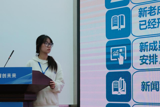 宁梦茜在讲话中首先对各部门新成员的加入表示热烈欢迎,向新成员们详细介绍了校新闻宣传中心的组织架构,学校各新媒体平台的运营情况以及未来努力的方向。她指出,新闻策划是否到位直接决定着新闻质量的高低,大家要安排部署在先,做到提前安排和准备,注意新闻宣传的时效性和真实性;在新闻创作时做到有意思和有意义兼顾,积极尝试、努力创新;在最后审核把关时要从细节入手,对新闻作品的内容、形式、立场等进行全面评估。她提出,在工作中难免会遇到挫折,但一定要不忘初心、自觉担负起职责使命后向前奋发;希望成员们在校新闻宣传中心这个大家庭多学习多积累,发挥自己的特长和能力,做到相信自己,拒绝精神内耗,不断创新作品,不断更新自己。