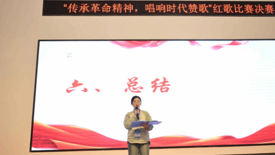 最后,刘星池做总结发言。她赞扬了选手们的精彩表现,感谢同学们的积极参与,同时也指出,红歌比赛不仅仅是一场音乐的较量,更是一次心灵的洗礼与精神的传承,希望大家能够将红歌中蕴含的革命精神融入日常生活与学习工作中,不忘初心,砥砺前行。